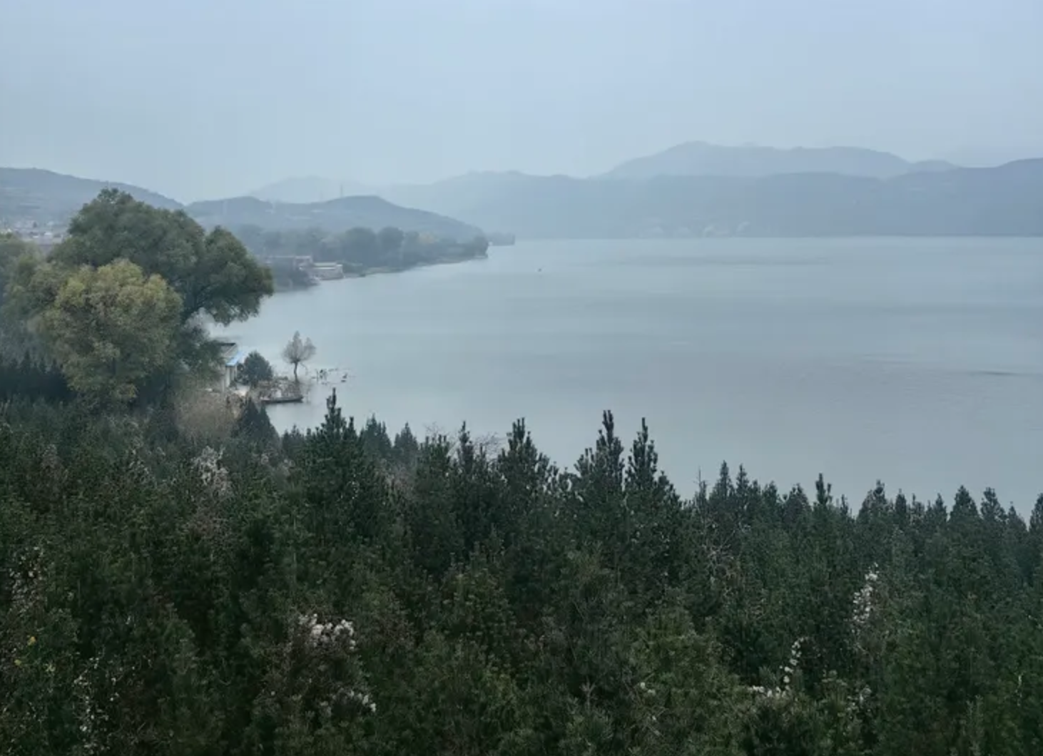"  位于呂梁山東麓、文峪河水庫西岸的交城縣南堡村,241國道如紐帶般穿村而過,蜿蜒的文峪河碧帶環抱,水韻悠長,鄉情濃郁。" 呂梁山下南堡村:文峪河碧,柿子橙紅